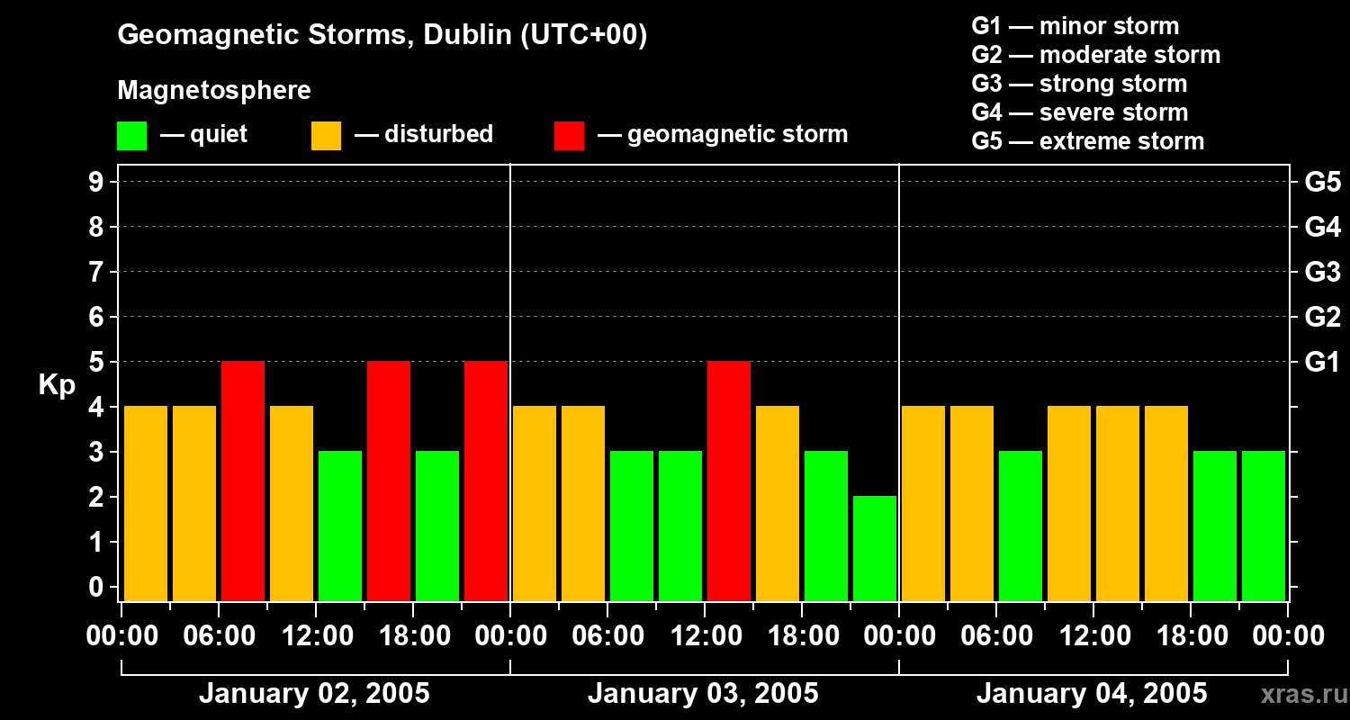 Geomagnetic storms in Dublin on Jan 04, 2005