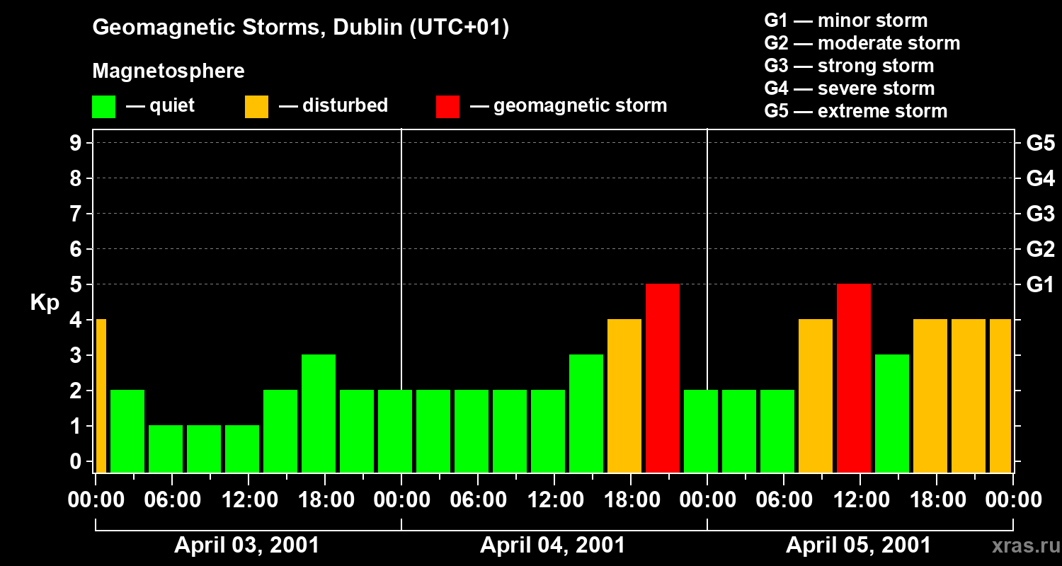 Geomagnetic storms in Dublin on Apr 05, 2001