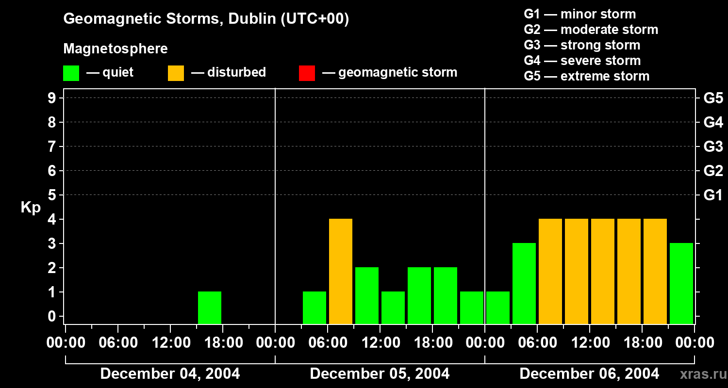 Geomagnetic storms in Dublin on Dec 06, 2004