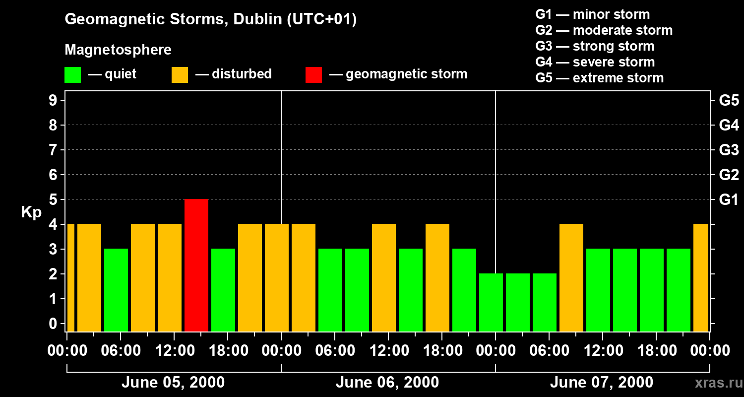 Geomagnetic storms in Dublin on Jun 07, 2000