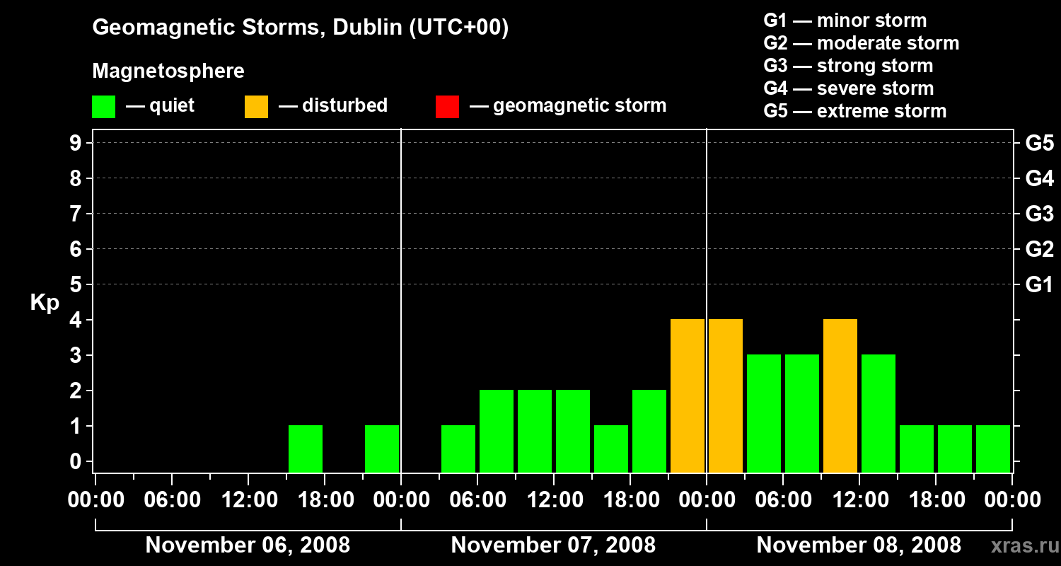 Geomagnetic storms in Dublin on Nov 08, 2008