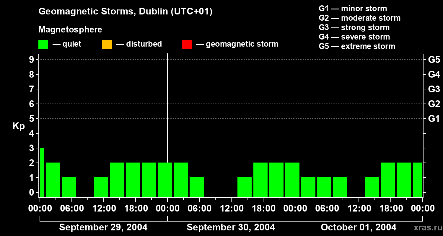 Geomagnetic storms in Dublin on Oct 01, 2004