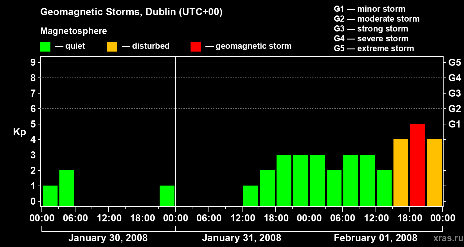 Geomagnetic storms in Dublin on Feb 01, 2008