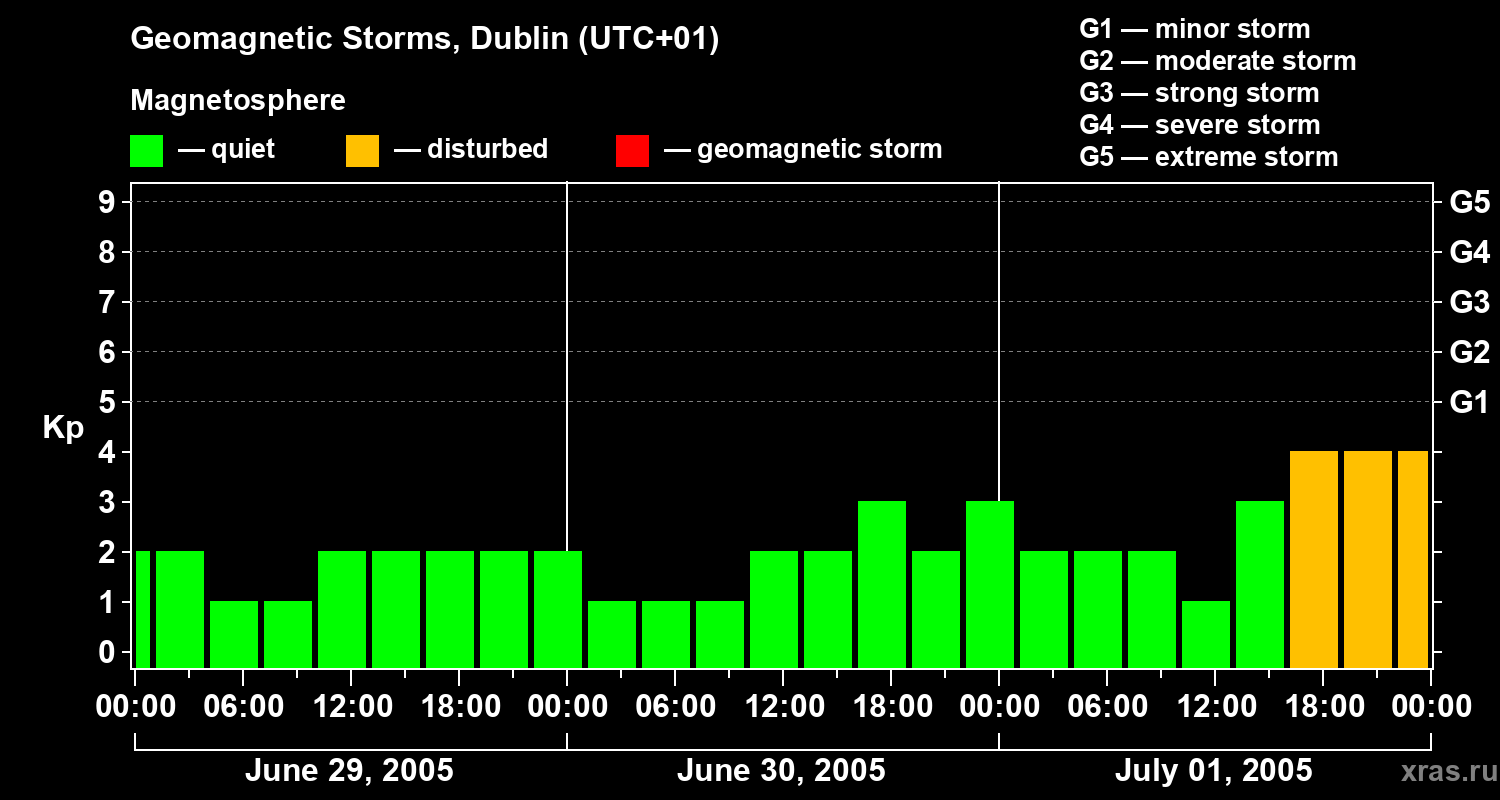Geomagnetic storms in Dublin on Jul 01, 2005