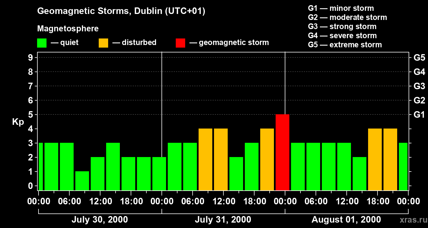 Geomagnetic storms in Dublin on Aug 01, 2000