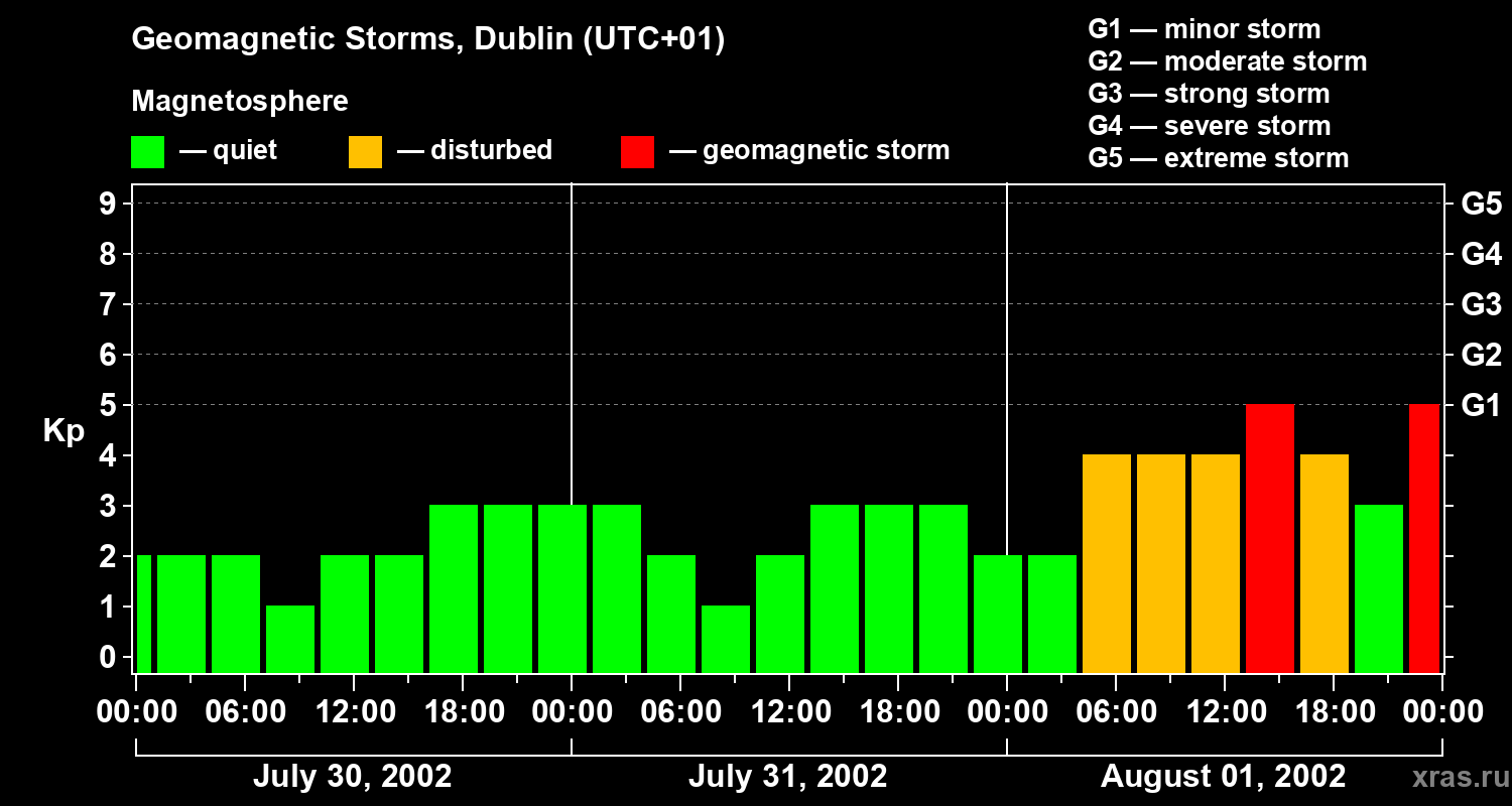 Geomagnetic storms in Dublin on Aug 01, 2002