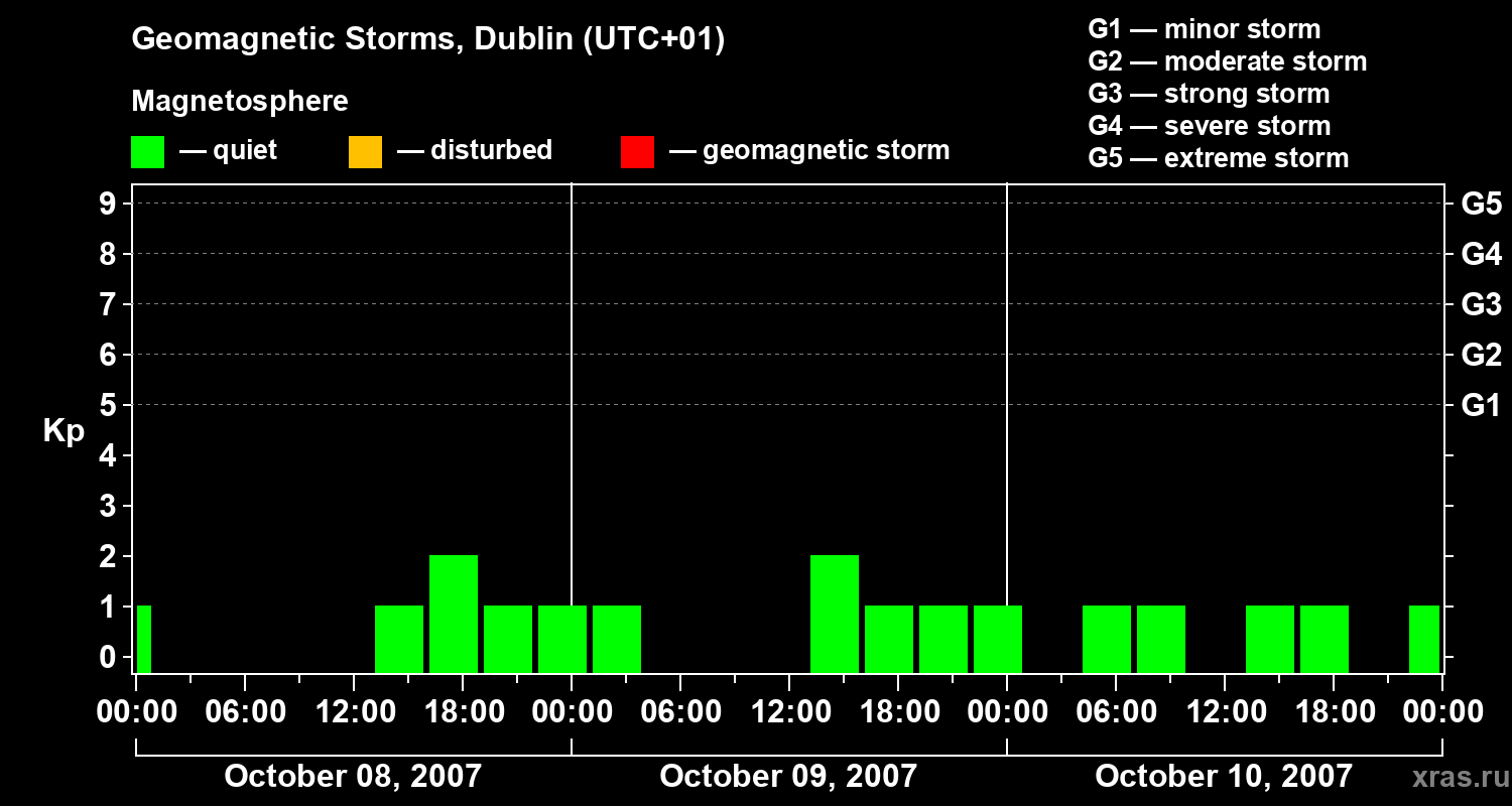 Geomagnetic storms in Dublin on Oct 10, 2007
