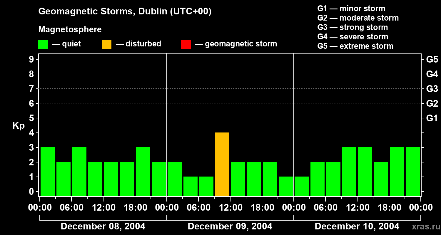 Geomagnetic storms in Dublin on Dec 10, 2004
