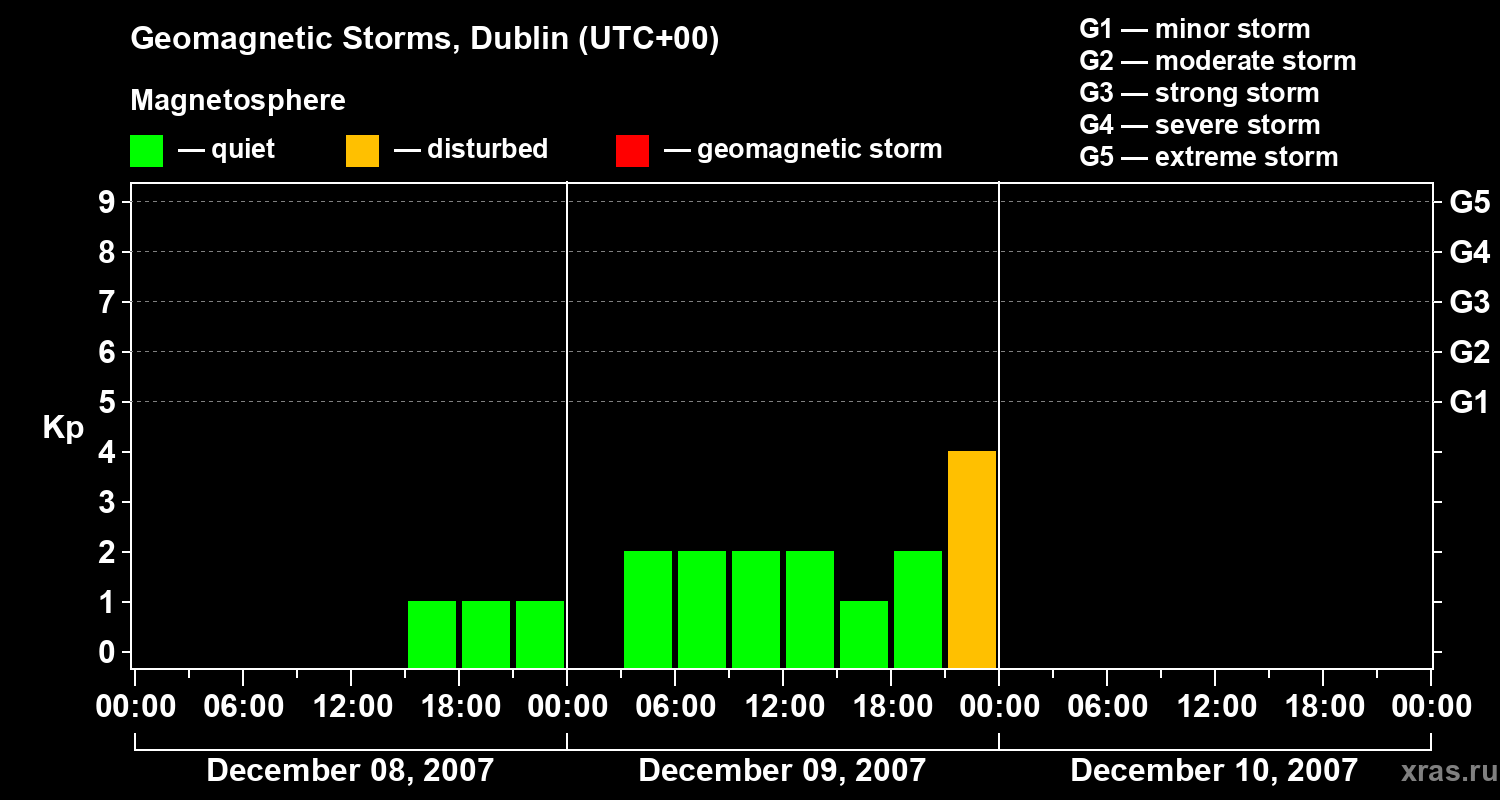 Geomagnetic storms in Dublin on Dec 10, 2007