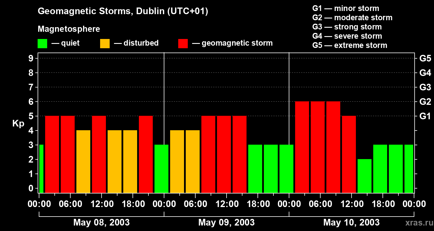 Geomagnetic storms in Dublin on May 10, 2003