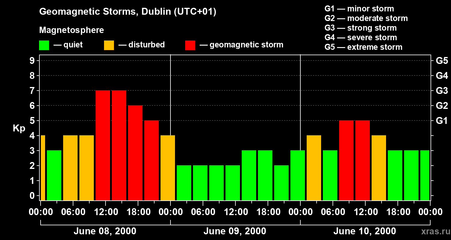 Geomagnetic storms in Dublin on Jun 10, 2000