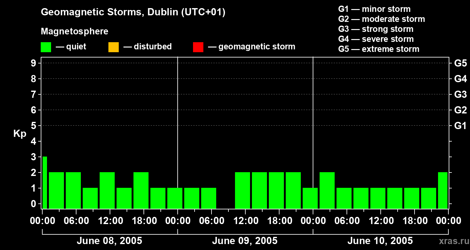 Geomagnetic storms in Dublin on Jun 10, 2005