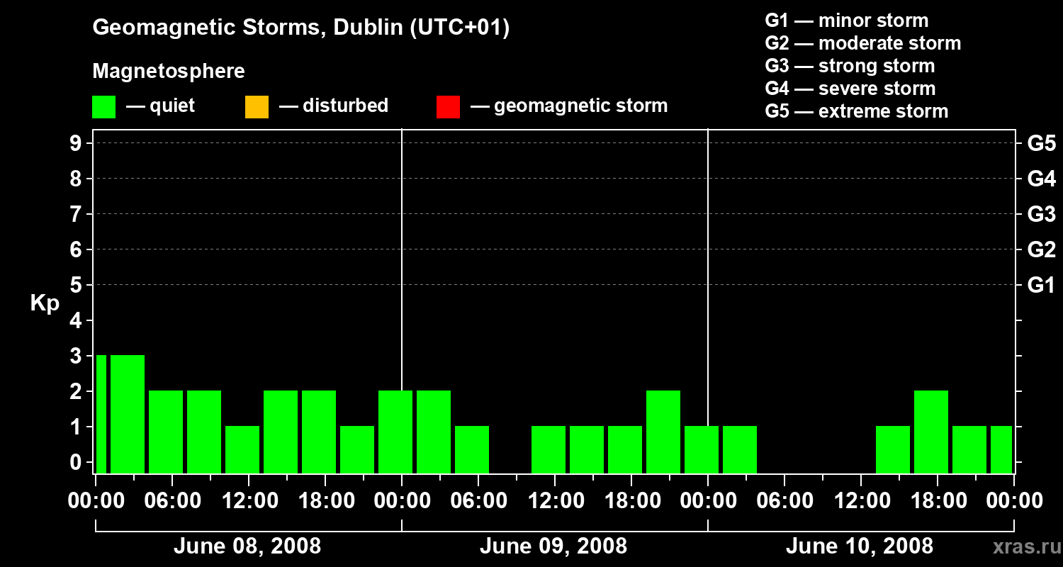 Geomagnetic storms in Dublin on Jun 10, 2008