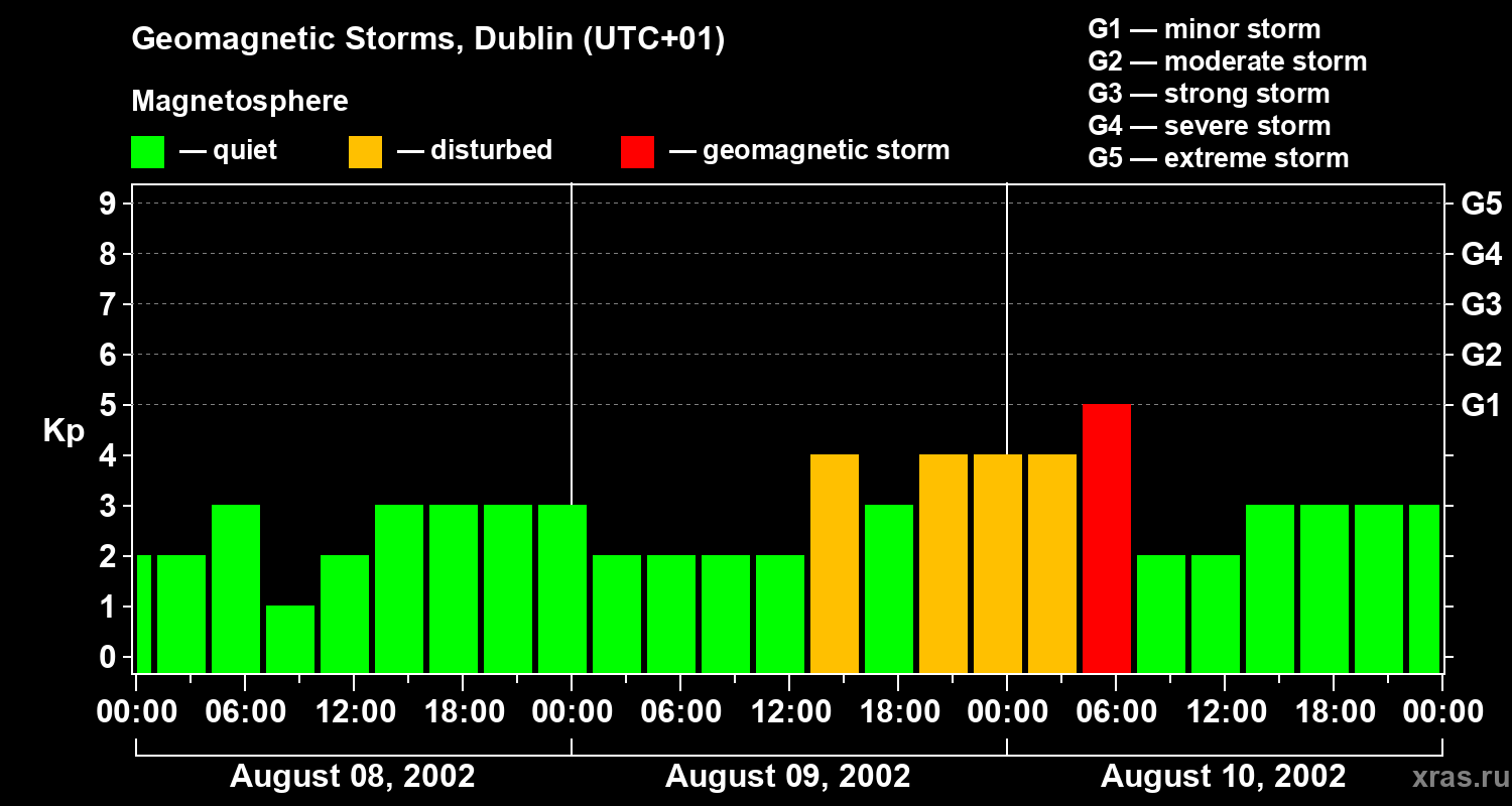 Geomagnetic storms in Dublin on Aug 10, 2002
