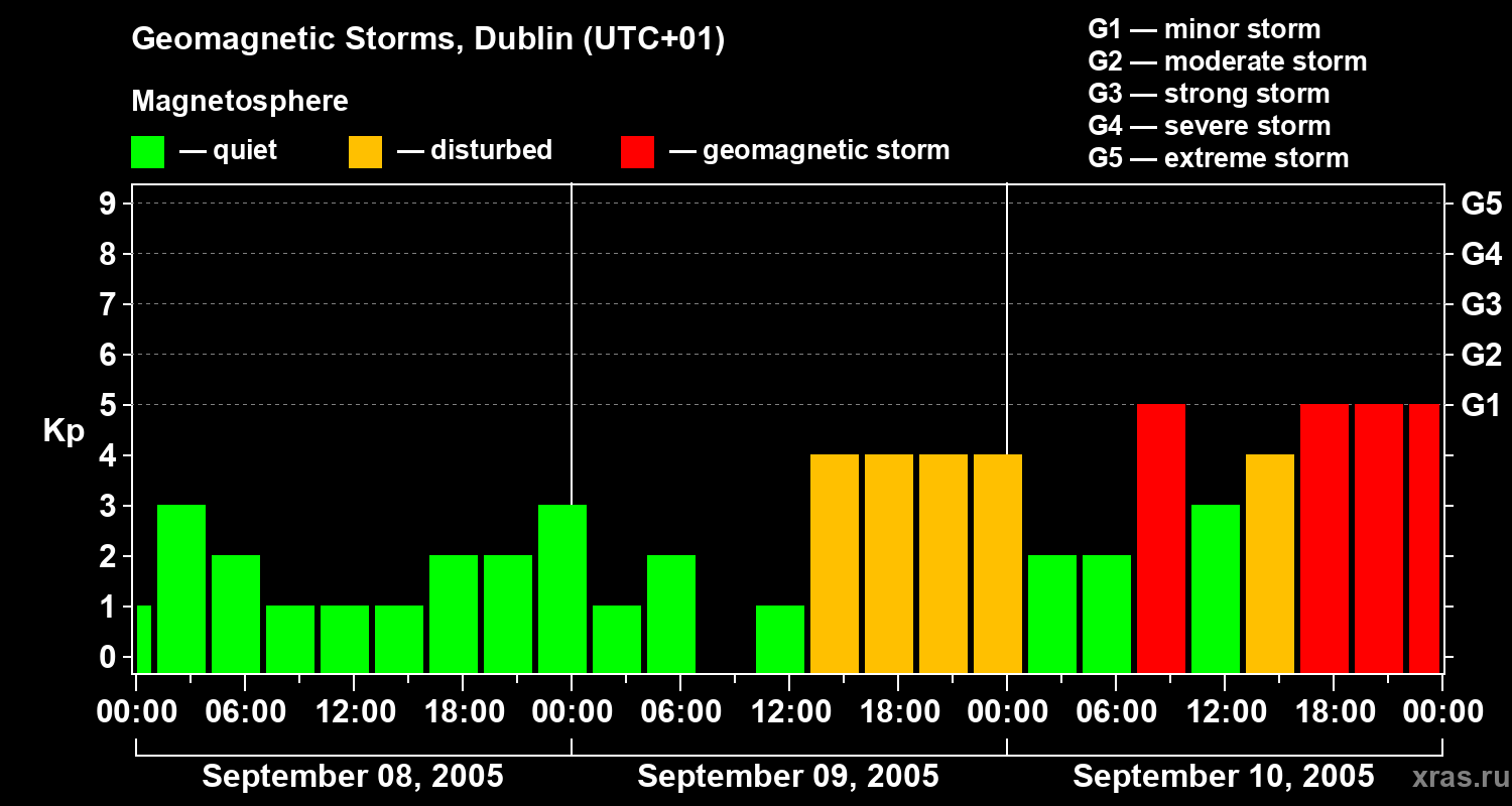 Geomagnetic storms in Dublin on Sep 10, 2005