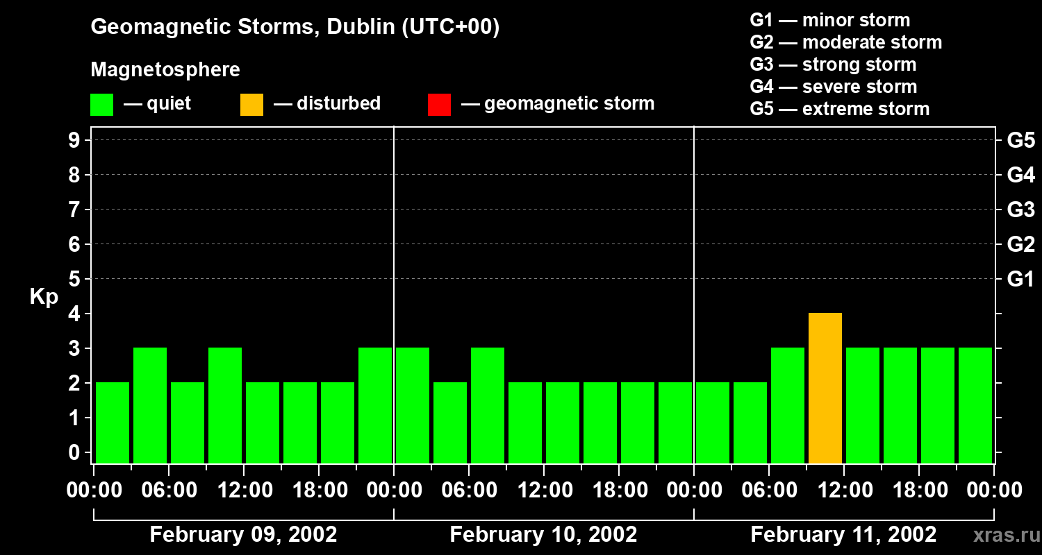 Geomagnetic storms in Dublin on Feb 11, 2002