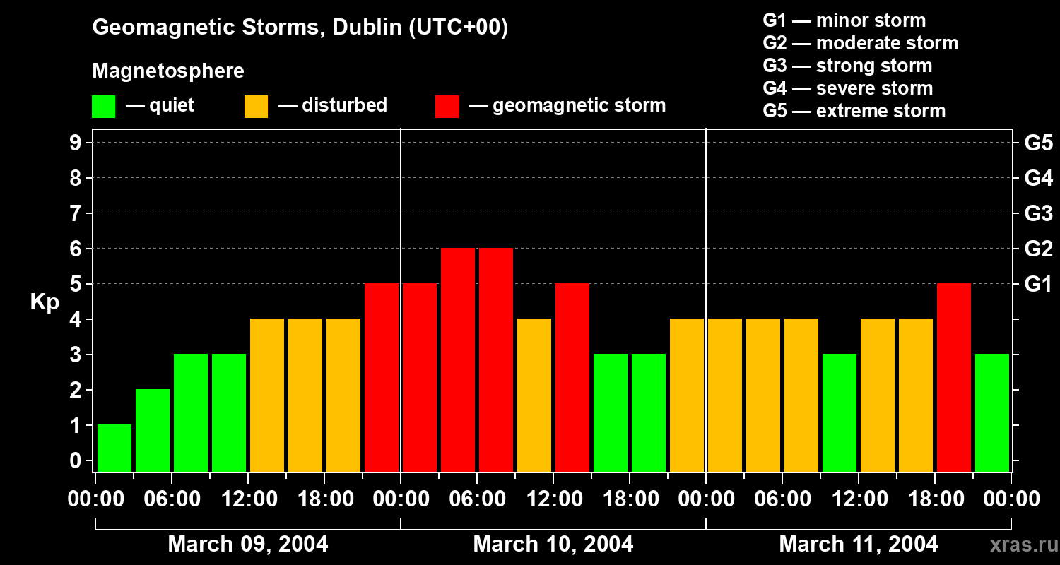 Geomagnetic storms in Dublin on Mar 11, 2004