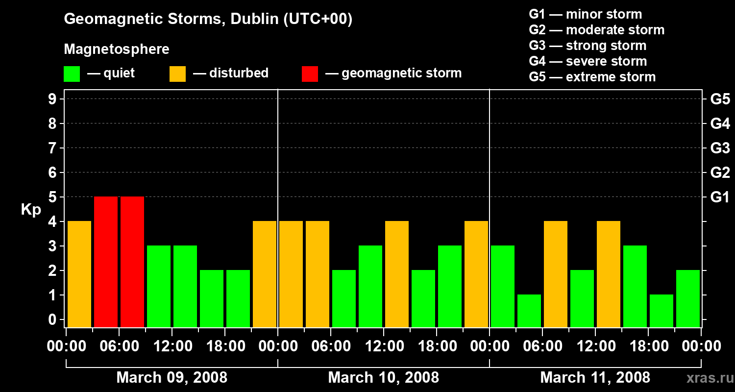 Geomagnetic storms in Dublin on Mar 11, 2008