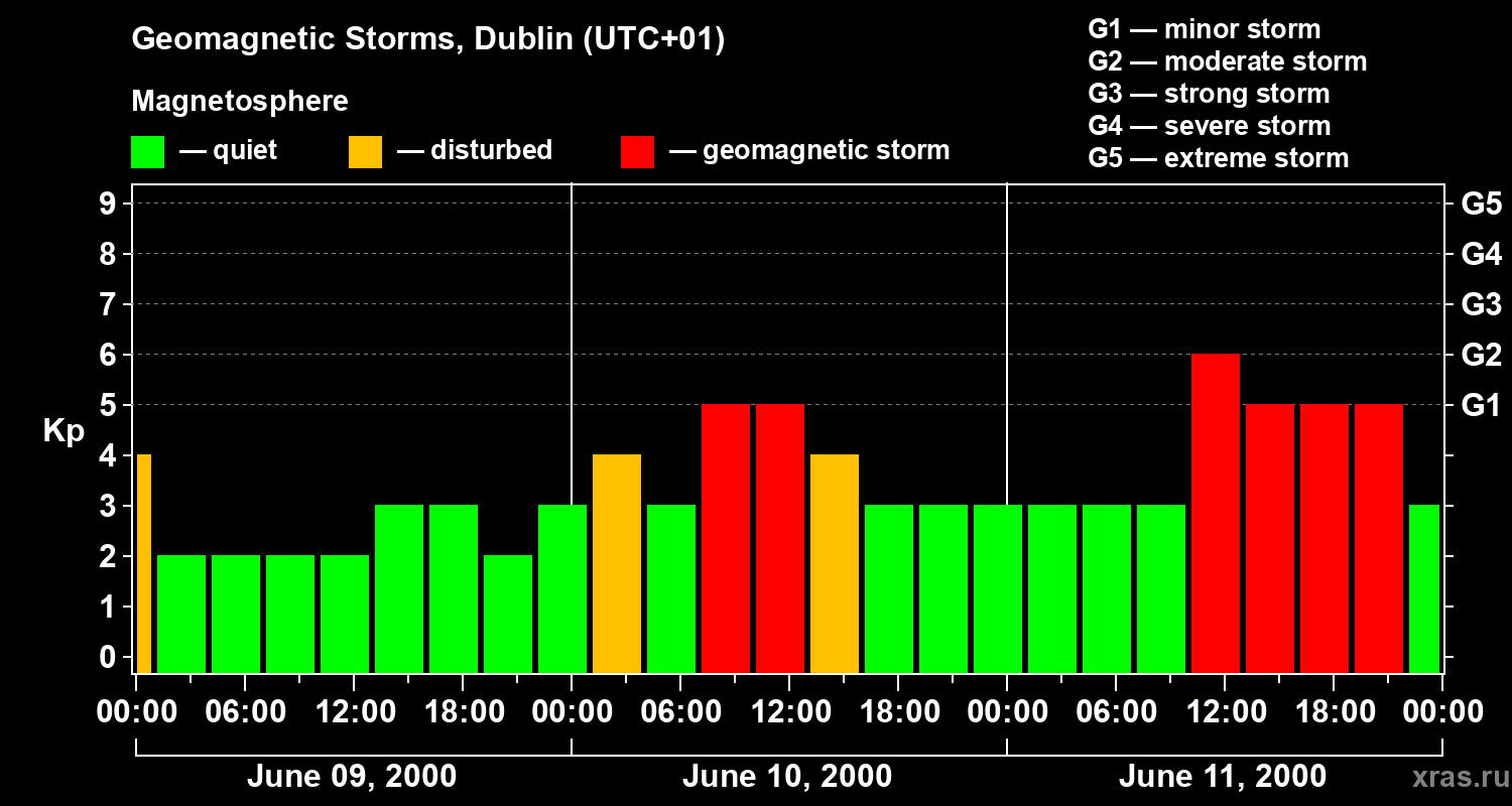 Geomagnetic storms in Dublin on Jun 11, 2000