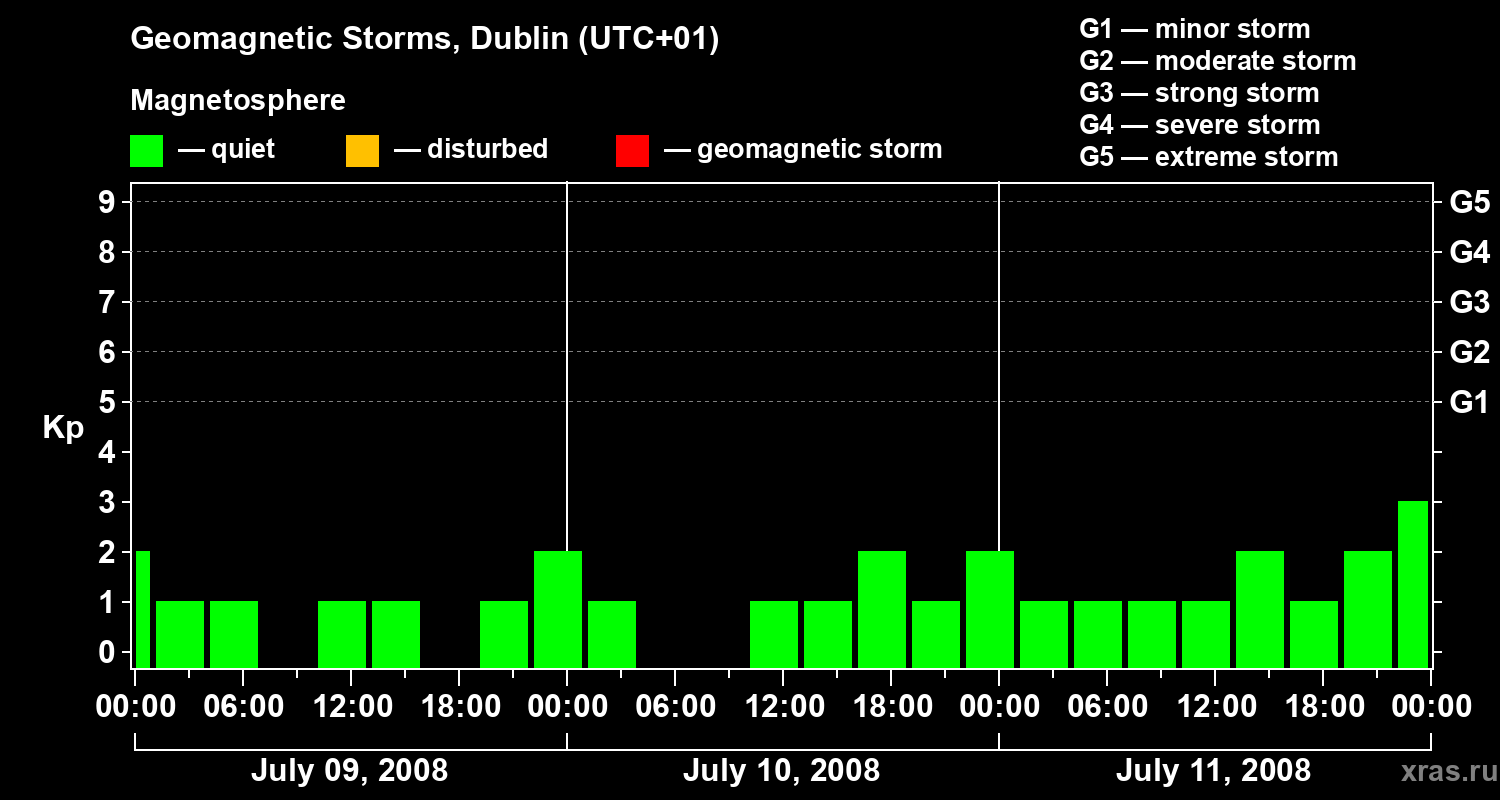 Geomagnetic storms in Dublin on Jul 11, 2008