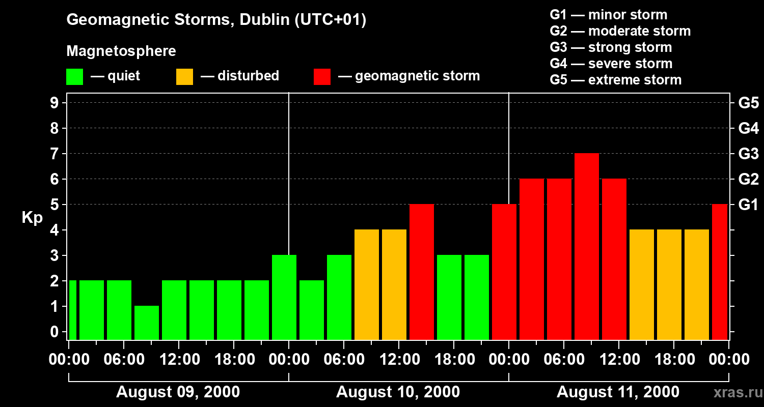 Geomagnetic storms in Dublin on Aug 11, 2000