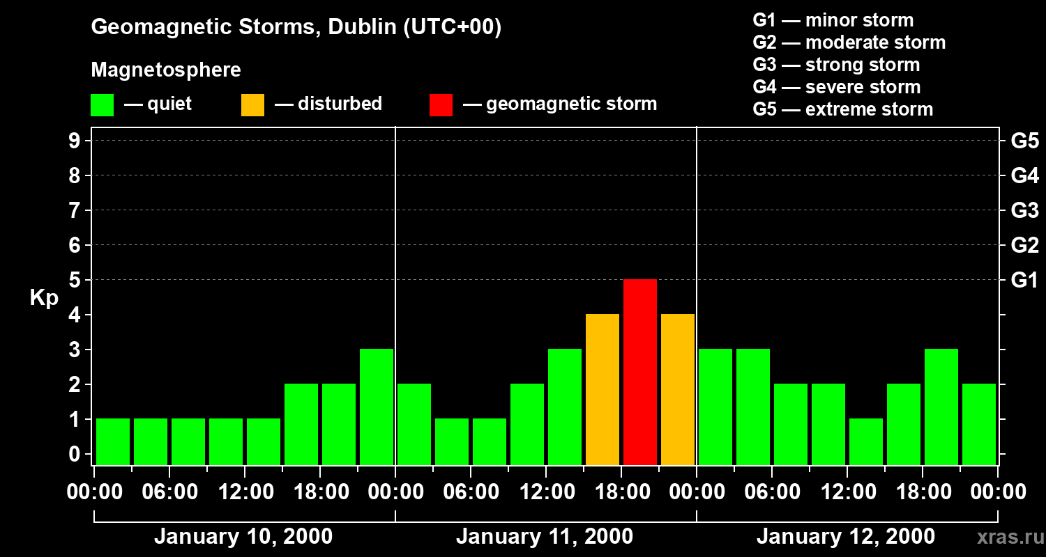 Geomagnetic storms in Dublin on Jan 12, 2000