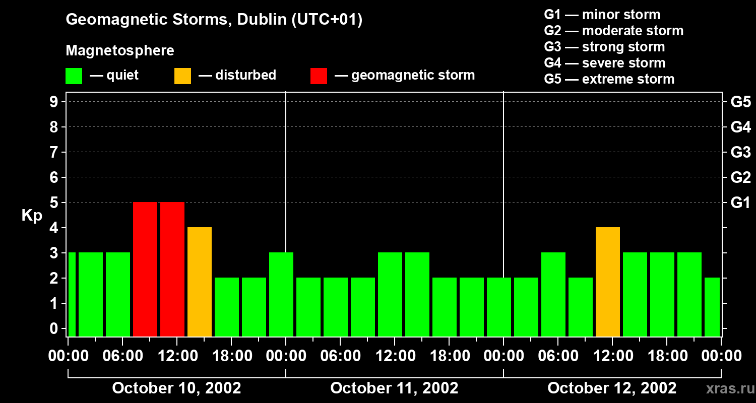 Geomagnetic storms in Dublin on Oct 12, 2002