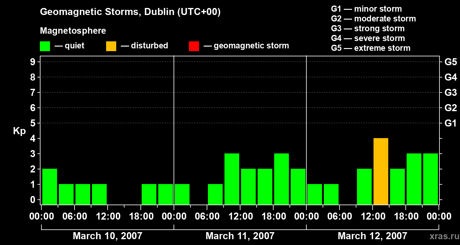 Geomagnetic storms in Dublin on Mar 12, 2007