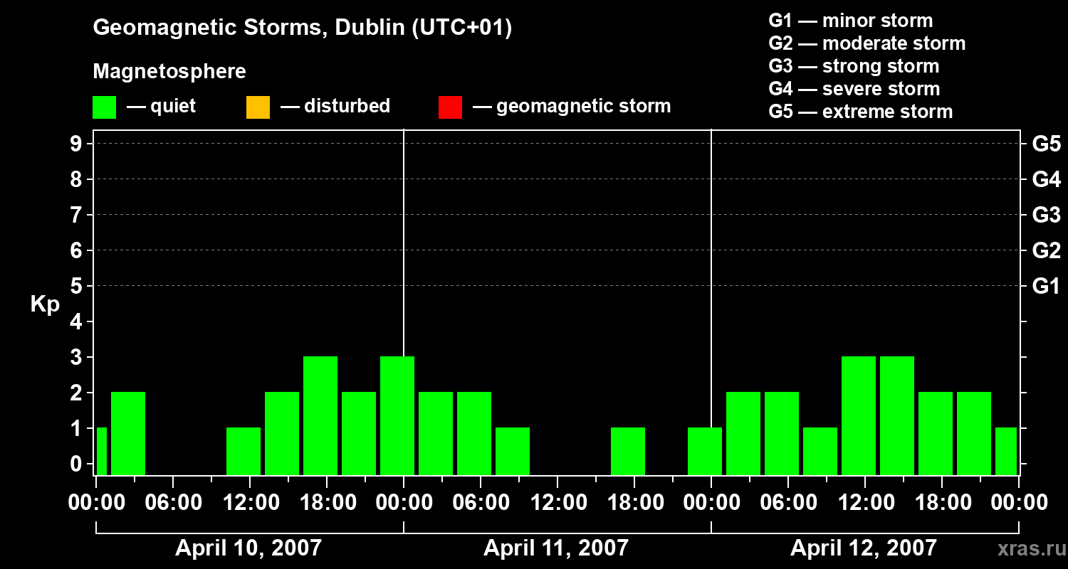 Geomagnetic storms in Dublin on Apr 12, 2007
