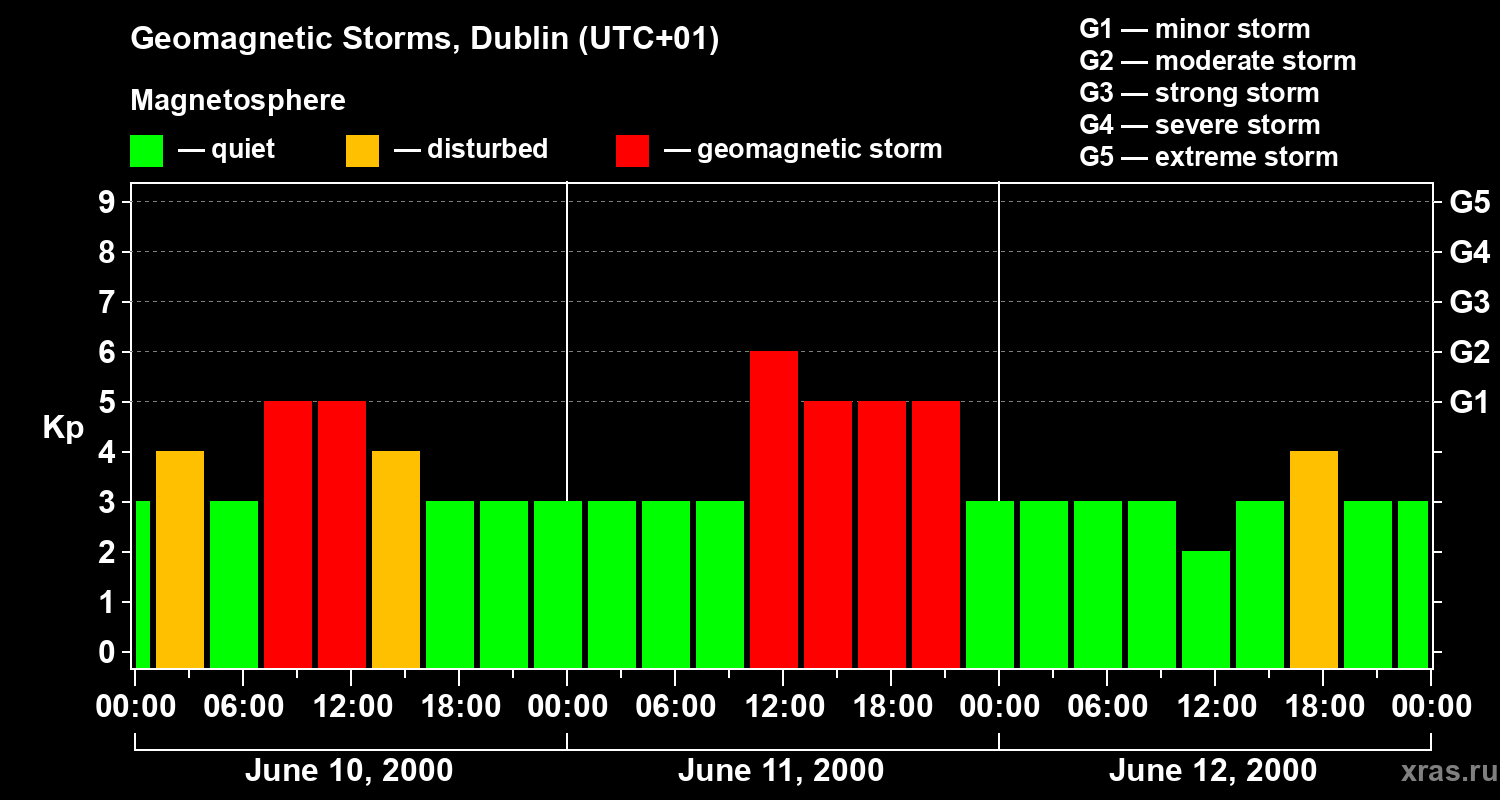 Geomagnetic storms in Dublin on Jun 12, 2000
