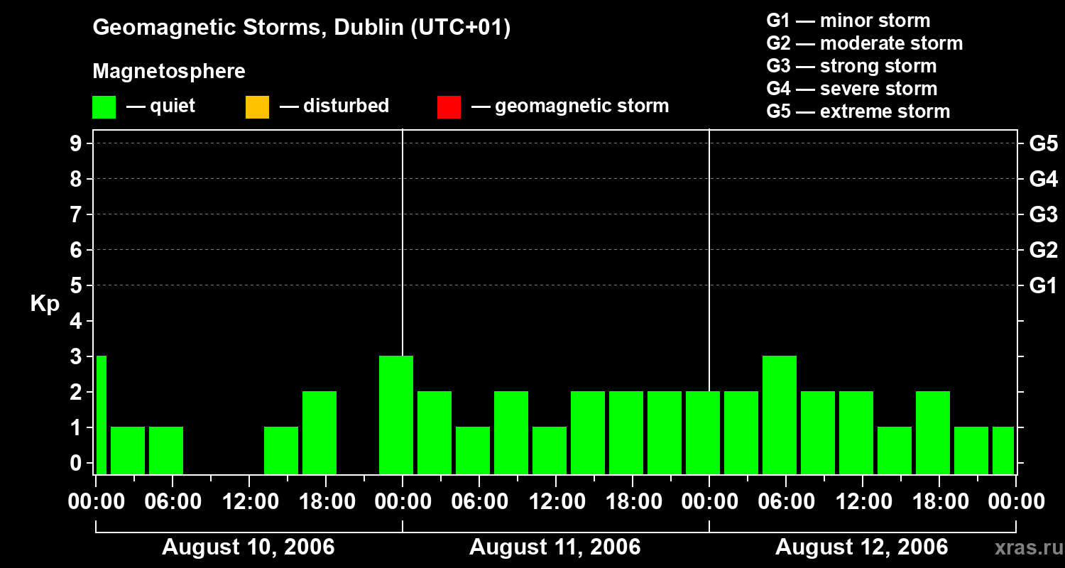 Geomagnetic storms in Dublin on Aug 12, 2006