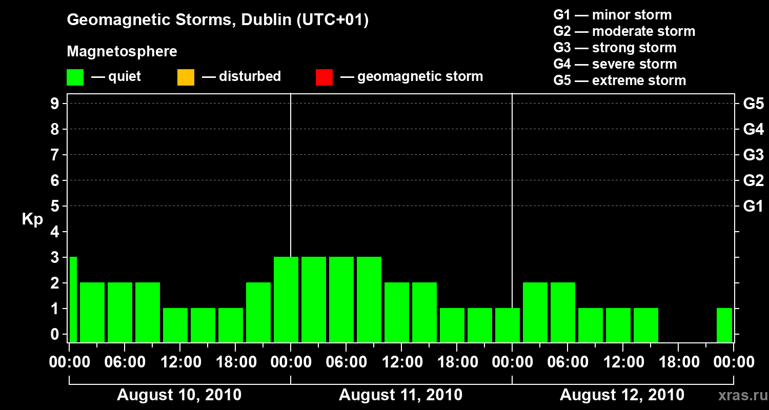 Geomagnetic storms in Dublin on Aug 12, 2010