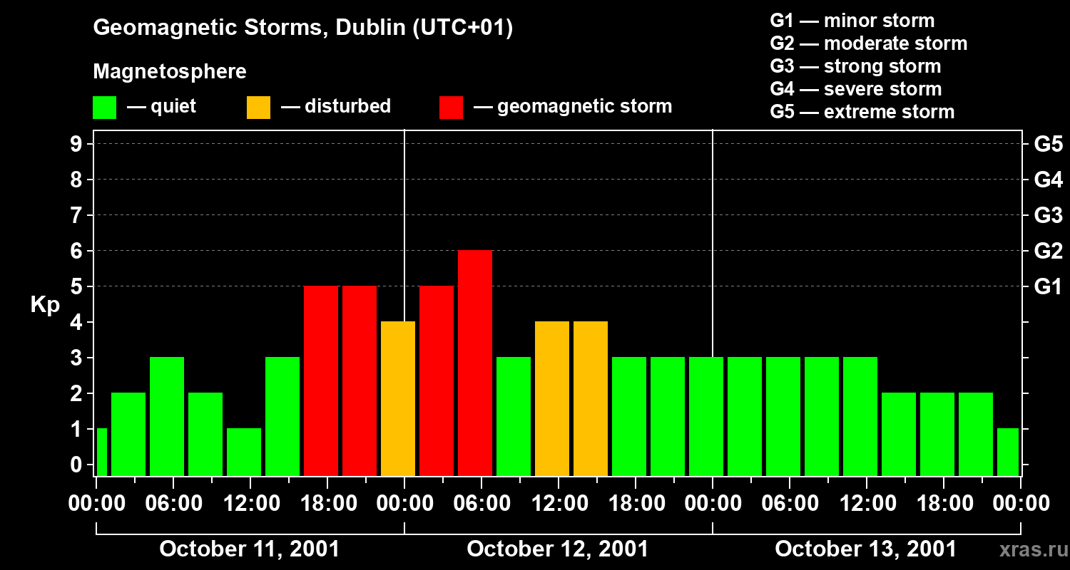 Geomagnetic storms in Dublin on Oct 13, 2001