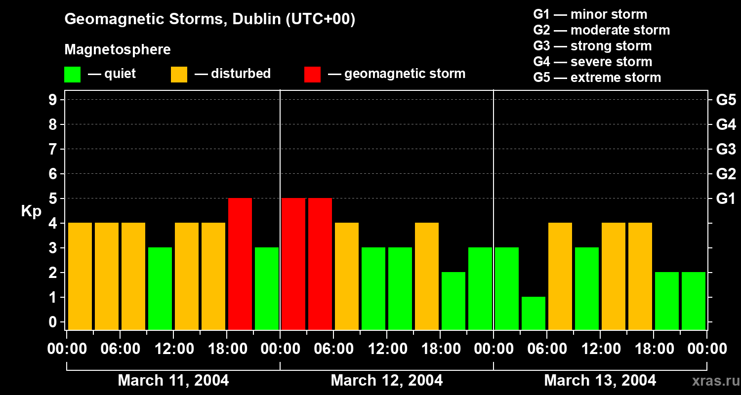 Geomagnetic storms in Dublin on Mar 13, 2004
