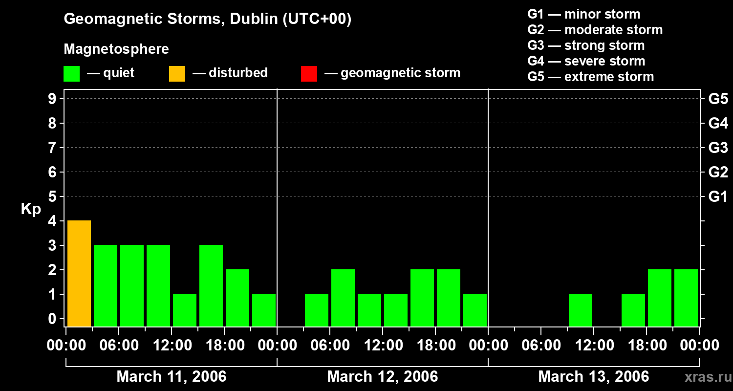 Geomagnetic storms in Dublin on Mar 13, 2006