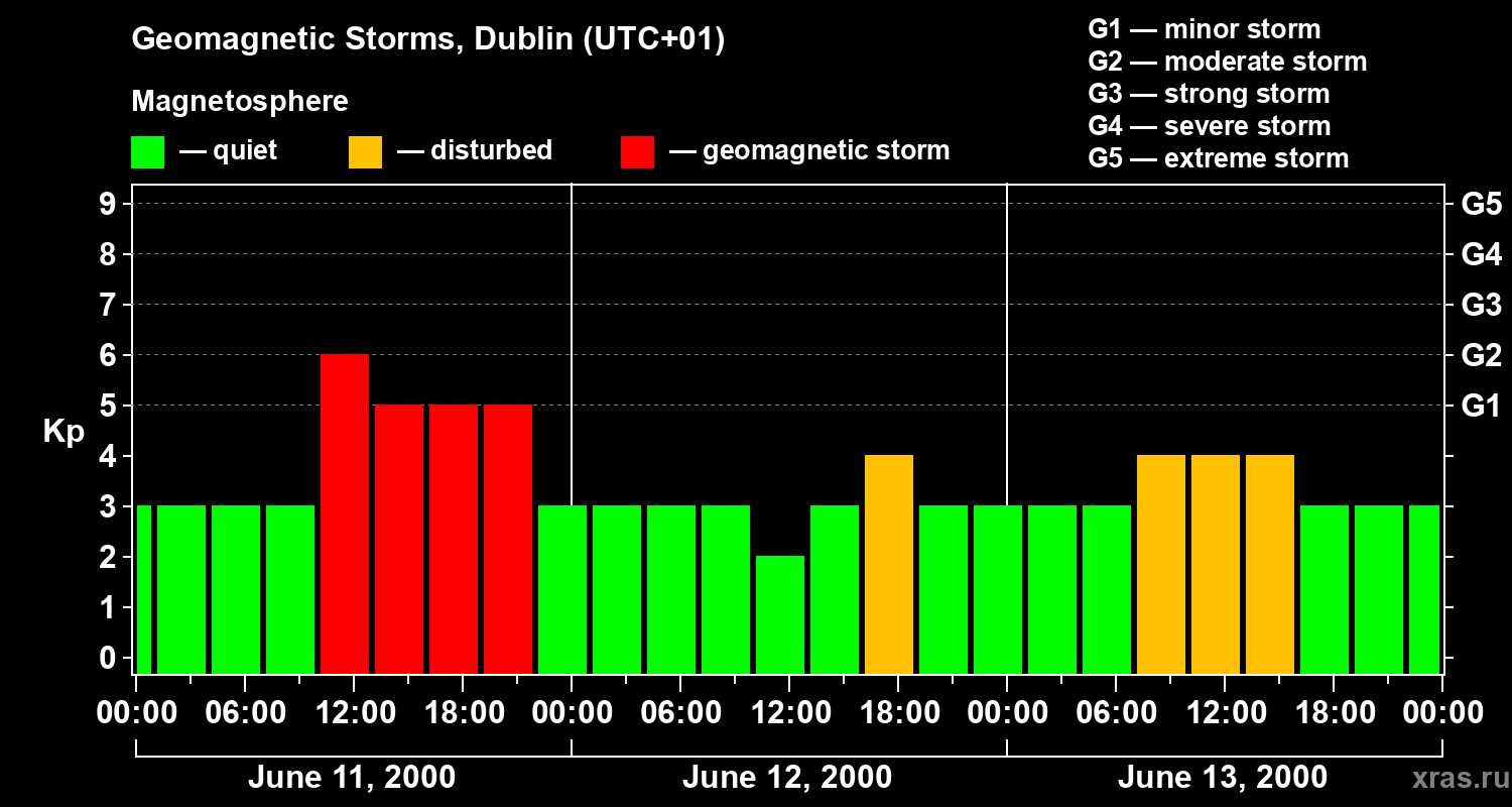 Geomagnetic storms in Dublin on Jun 13, 2000