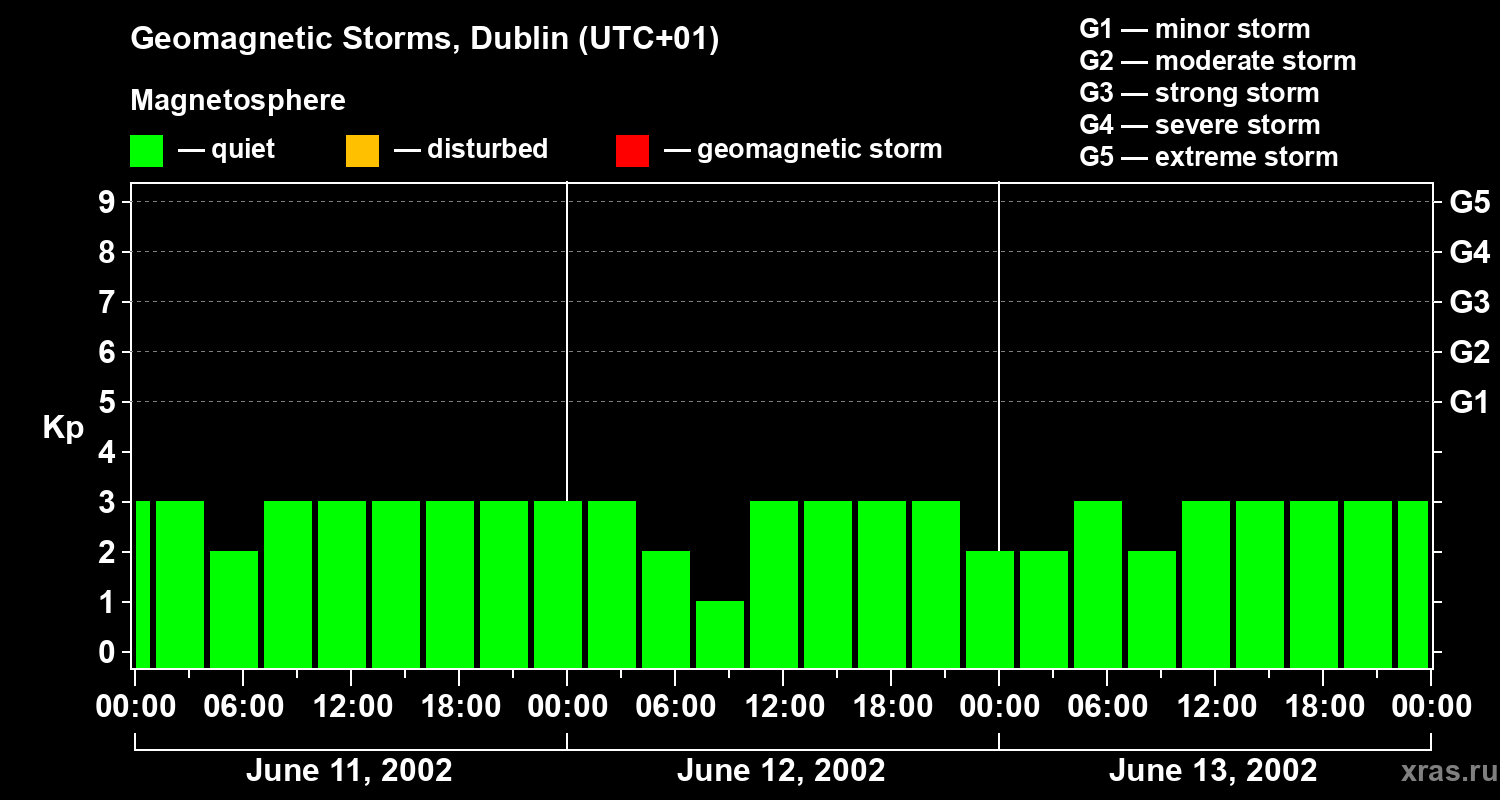 Geomagnetic storms in Dublin on Jun 13, 2002