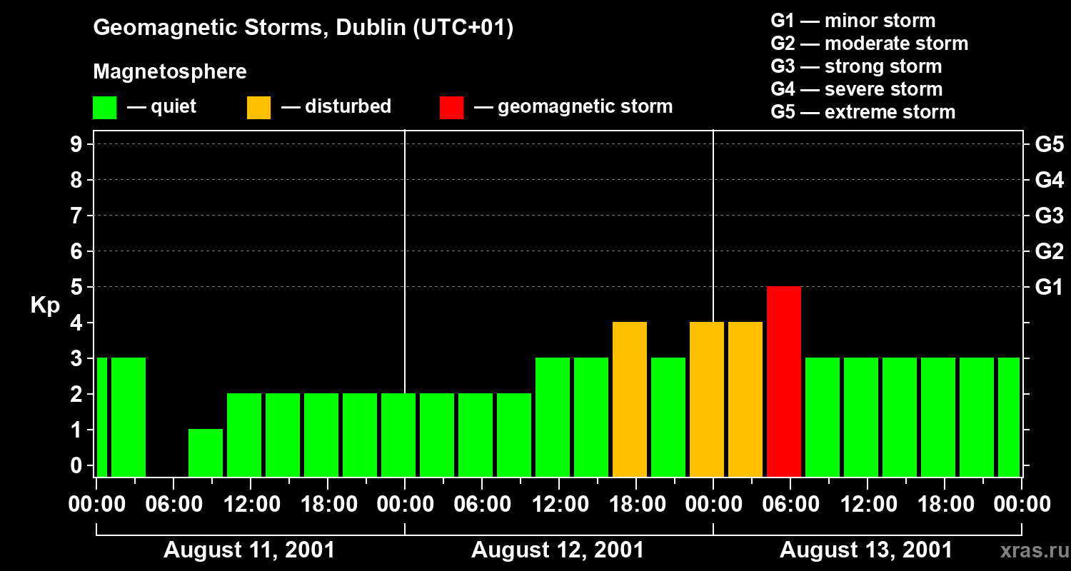 Geomagnetic storms in Dublin on Aug 13, 2001