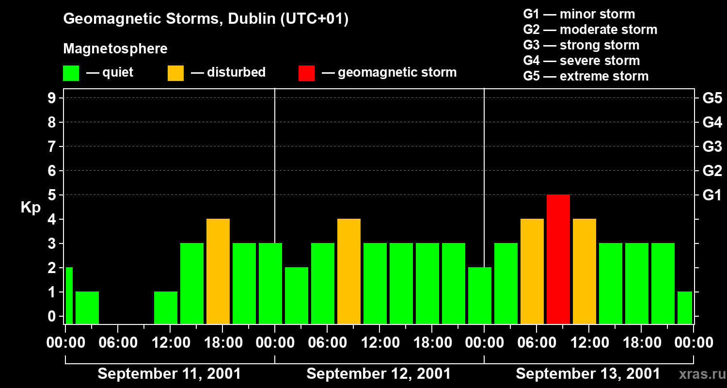 Geomagnetic storms in Dublin on Sep 13, 2001
