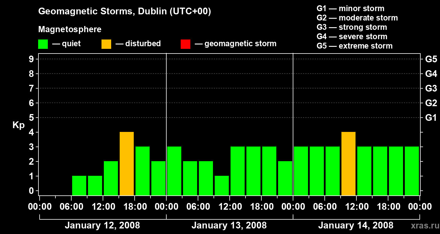 Geomagnetic storms in Dublin on Jan 14, 2008
