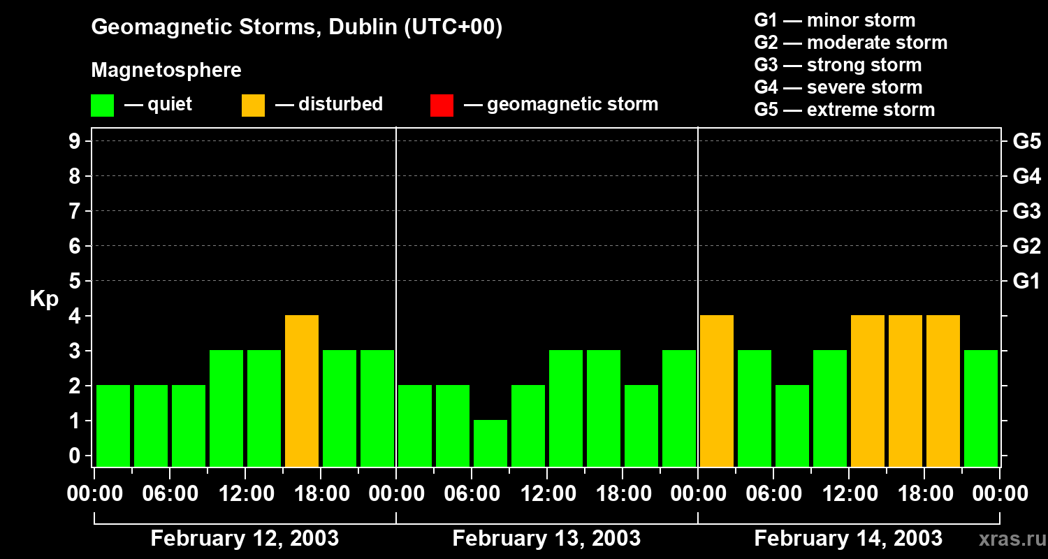 Geomagnetic storms in Dublin on Feb 14, 2003
