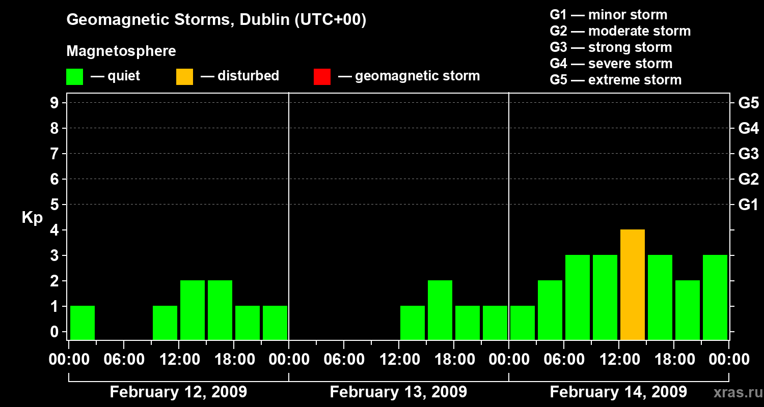 Geomagnetic storms in Dublin on Feb 14, 2009