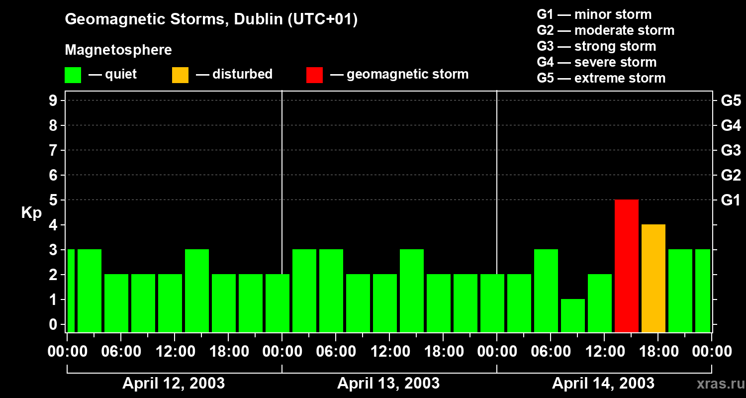 Geomagnetic storms in Dublin on Apr 14, 2003