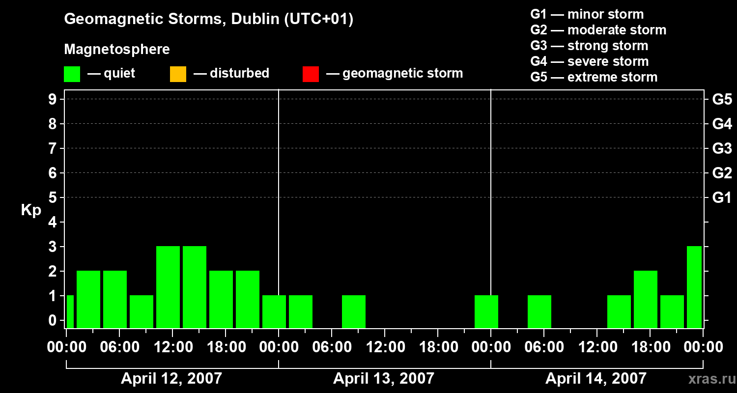Geomagnetic storms in Dublin on Apr 14, 2007