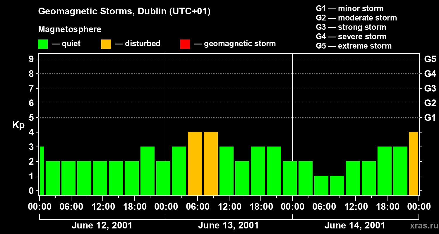 Geomagnetic storms in Dublin on Jun 14, 2001