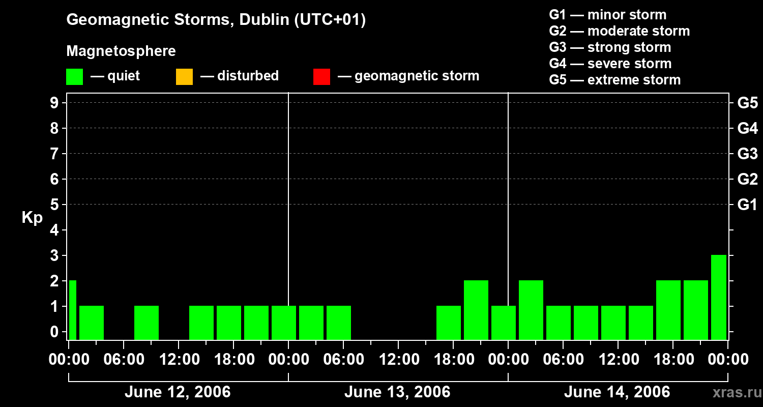 Geomagnetic storms in Dublin on Jun 14, 2006