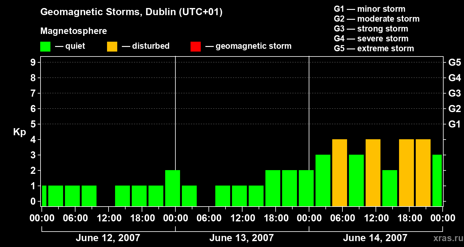 Geomagnetic storms in Dublin on Jun 14, 2007