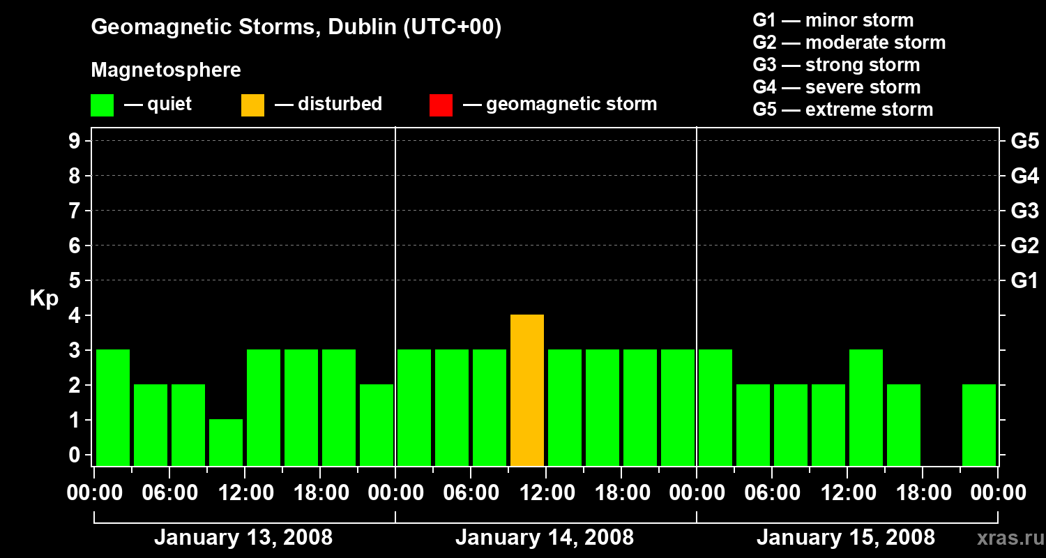 Geomagnetic storms in Dublin on Jan 15, 2008