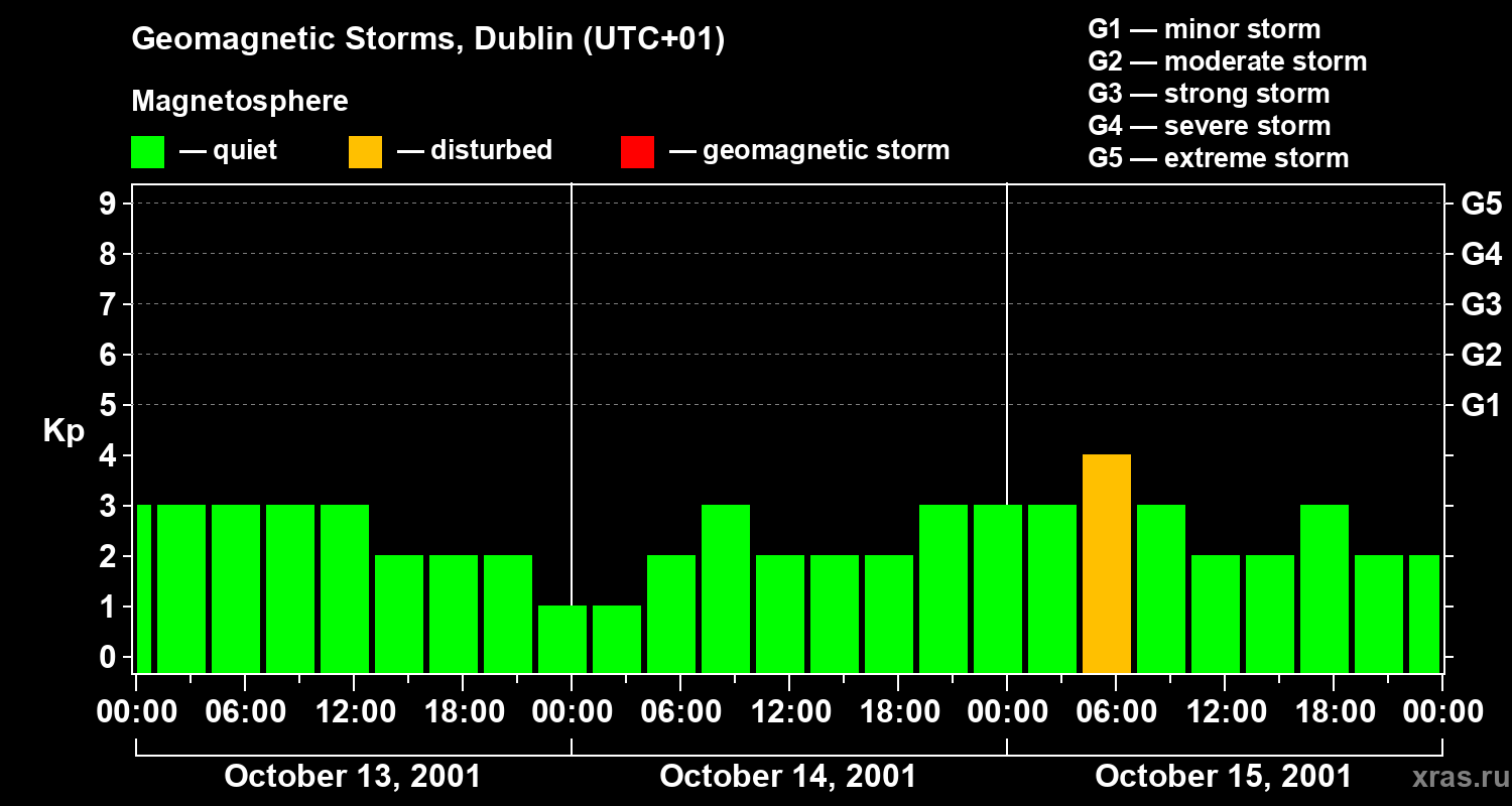 Geomagnetic storms in Dublin on Oct 15, 2001