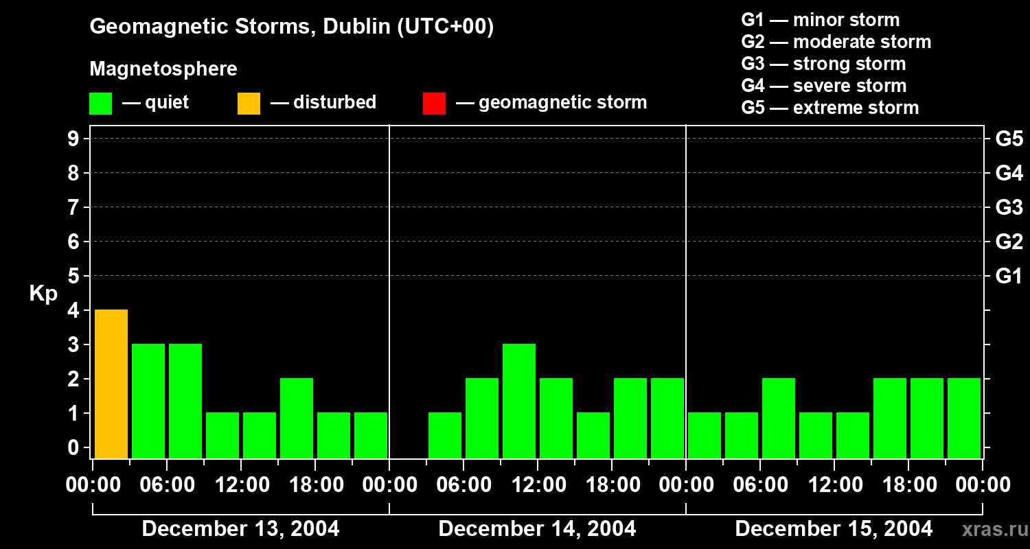 Geomagnetic storms in Dublin on Dec 15, 2004